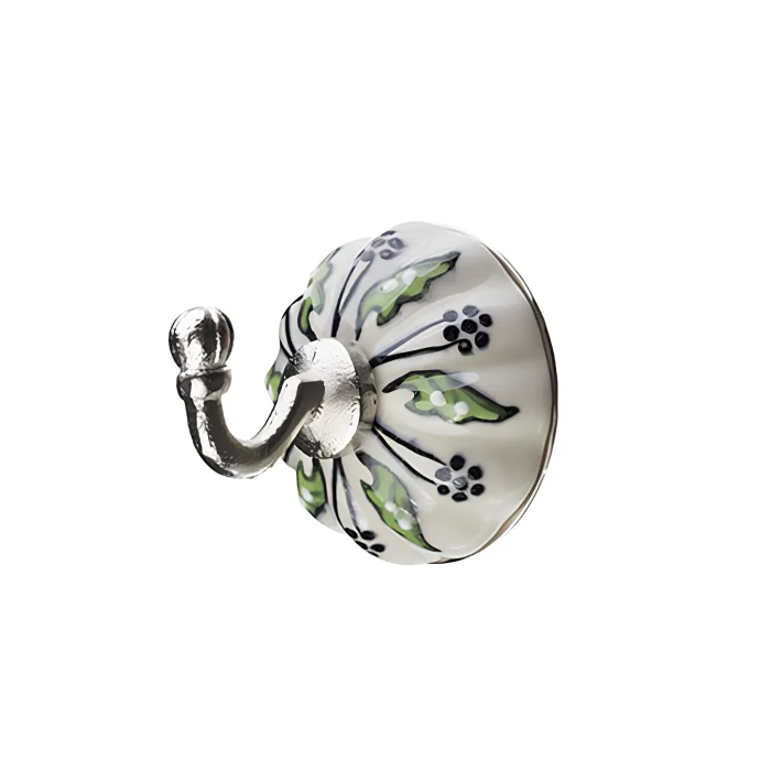 Yarı yuvarlak, el yapımı duvar askılarımız pratik ve çok fonksiyonludur. Ortasında, metal kanca antik bir görünüme sahip olarak yerleştirilmiştir. Eğik şekli sayesinde, ceketler, montlar, çantalar ve havlular bu güzel duvar rafında güvenle durur. Seramiğin ince parlaklığı, gümüş kanca ile mükemmel bir uyum sağlar ve hatta bir askı olmadan bile çok dekoratif ve klasik bir duvar tasarımı sunar.