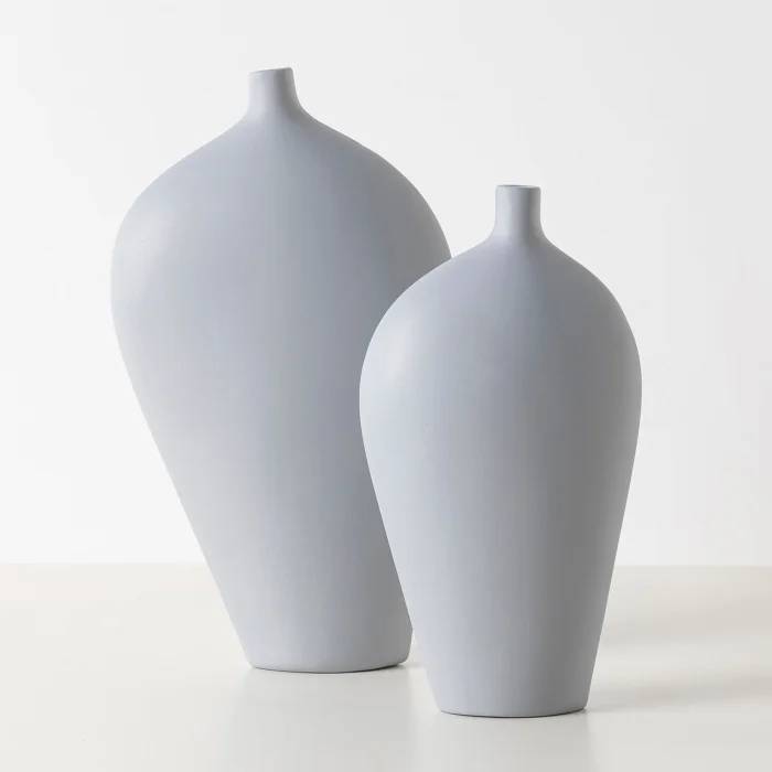 Yüksek kaliteli seramikten üretilen bu vazolar, dayanıklılığı ile uzun ömürlü kullanım sunar. Mat beyaz yüzeyi, ışığı yumuşak bir şekilde yansıtarak sade ama etkileyici bir görünüm sağlar.