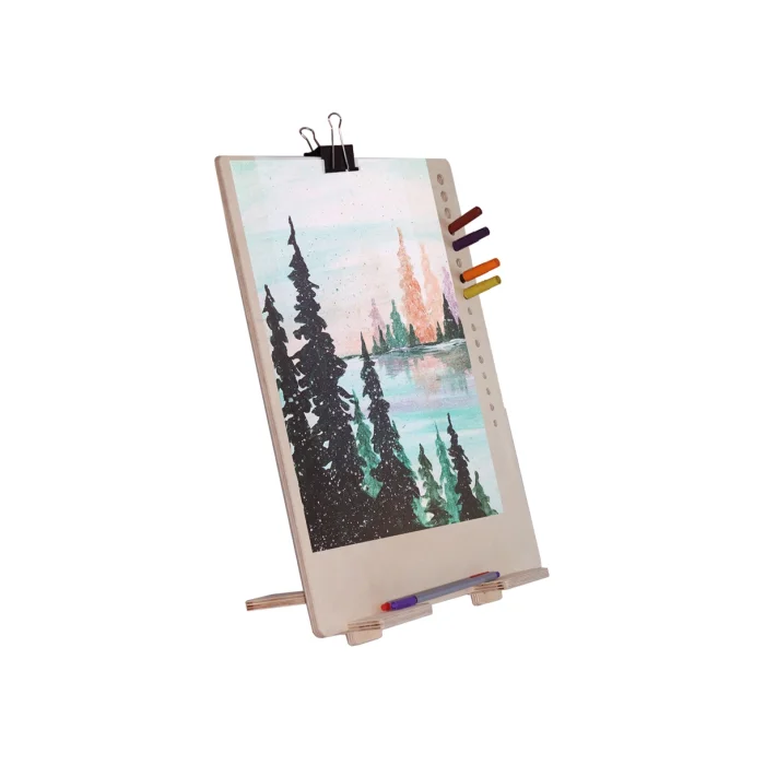 Masaüstü Çizim Şövalesi yan bölümünde kalem ve fırçalarınız için boşluklar vardır.