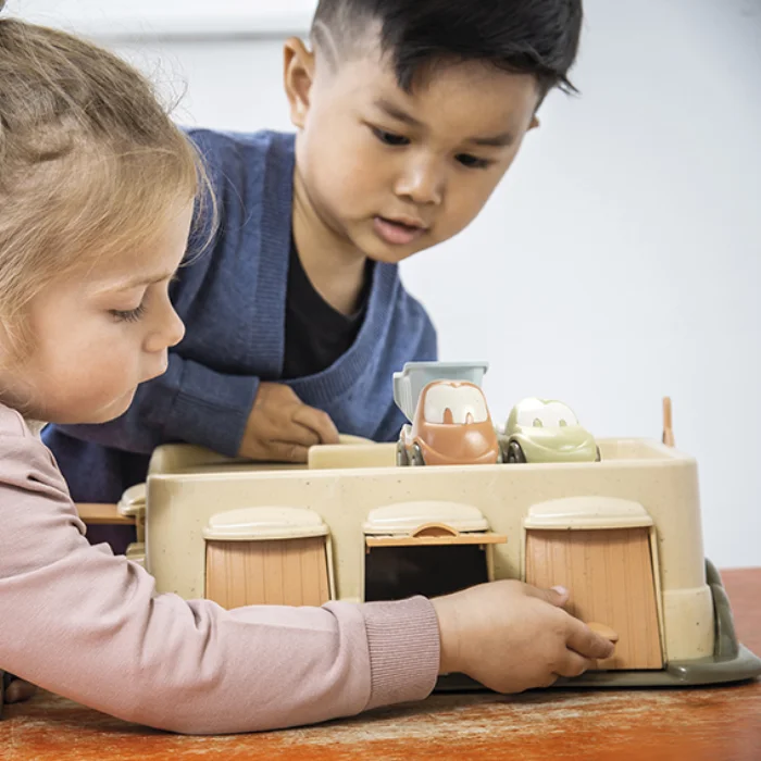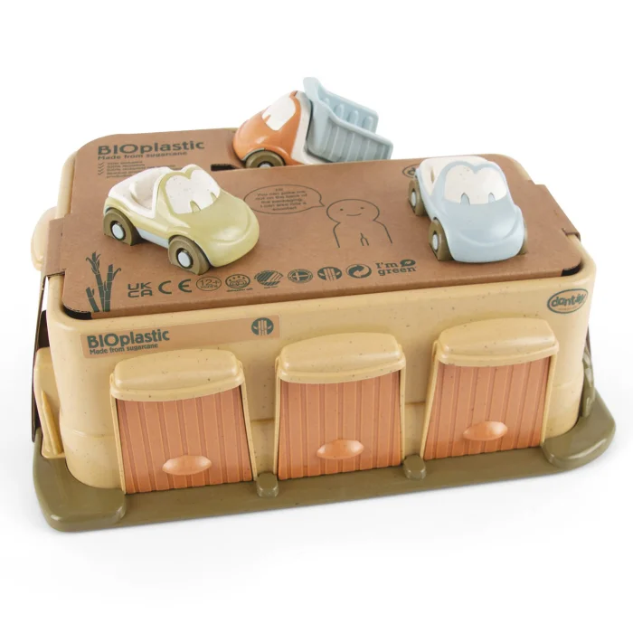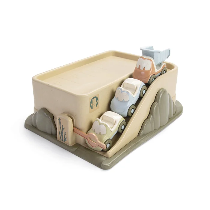 Kendisine ait üç küçük sevimli araba için soft renklerde bir garaj. Set iç ve dış mekanlarda rahatlıkla oynanabilir. Kum havuzundan veya su birikintilerinden geçtikten sonra, arabaların bulaşık makinesinde temizlenmesi kolaydır. Garaj da bulaşık makinesinde de yıkanabilir, ancak etiketleri korumak için elde yıkamanızı öneririz. 4 parçadan oluşan set 12 aydan itibaren kullanılabilir.