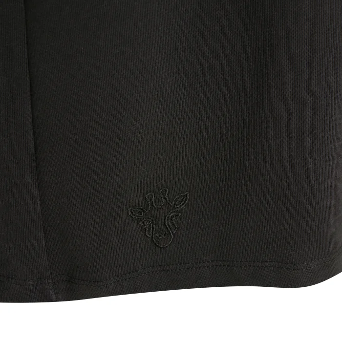 Sol yandan derin yırtmaçlı, Etek ucunda zürafa logosu işlemeli