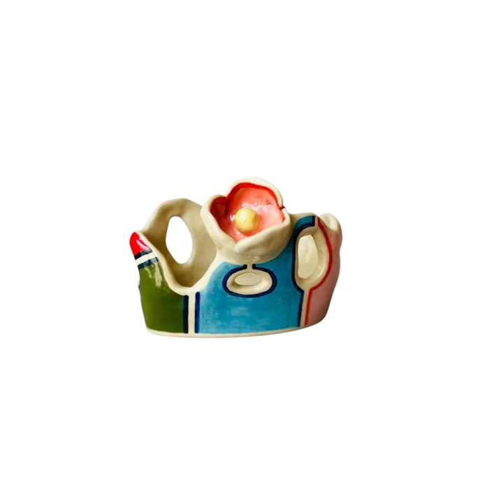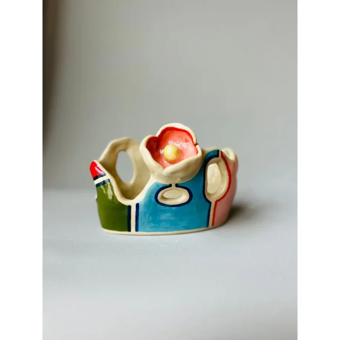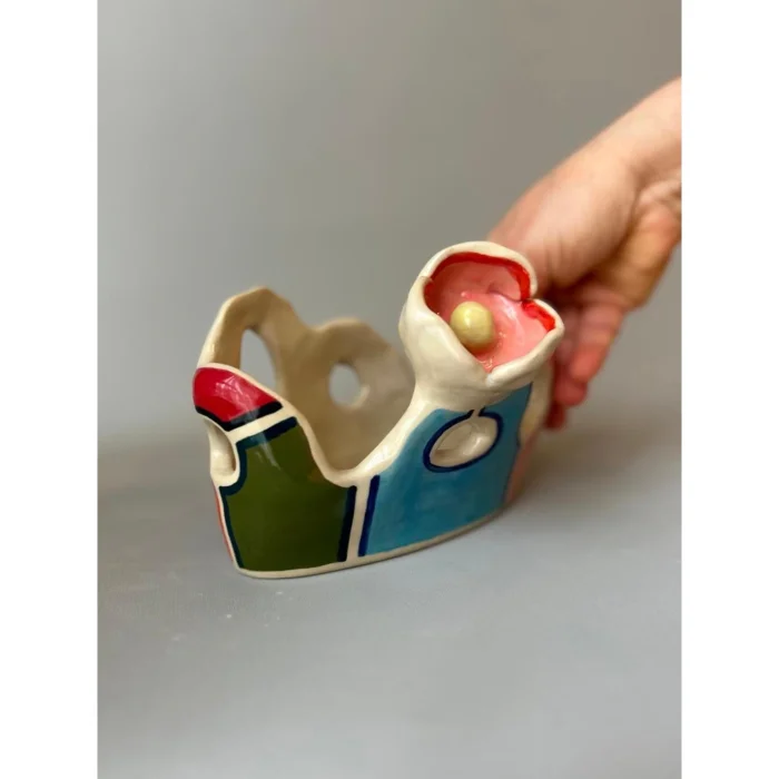 Ürün: Geometrik Desenli Çiçekli Oval Stoneware Obje Cy0003