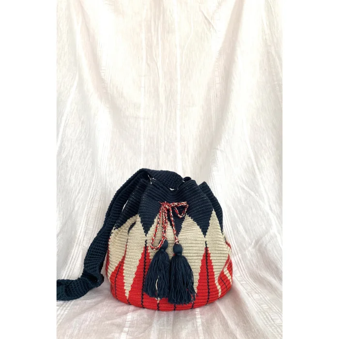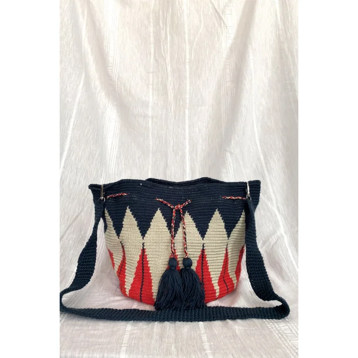Geleneksel Wayuu Mochila Çanta, Kol Çantası, Kol Çantası Kolombiya'da yaşayan geleneksel Wayuu kabilesinin örgü tekniği ile %100 yerli olarak üretilmiştir. El yapımı olan bu çantanın eşi benzeri yoktur. Her çantadan bir adet üretilmektedir. Üretimi uzun süren emek yoğun bir üründür. Örgü tekniği ve iplik özelliği nedeni ile çok sağlam bir çantadır.