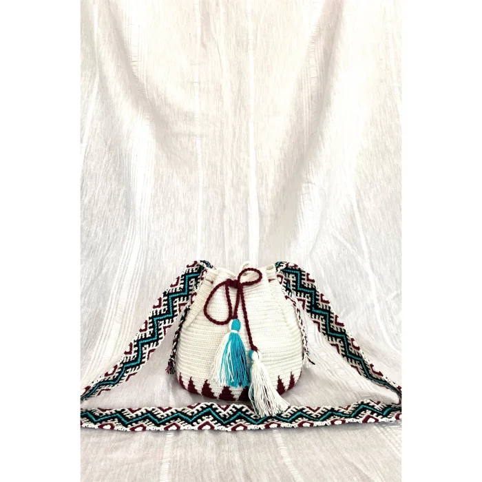 Mini Makbus Wayuu Mochila Çanta, Kol Çantası Kolombiya'da yaşayan geleneksel Wayuu kabilesinin örgü tekniği ile %100 yerli olarak üretilmiştir. El yapımı olan bu çantanın eşi benzeri yoktur. Her çantadan bir adet üretilmektedir. Üretimi yaklaşık 1 ay süren emek yoğun bir üründür. Örgü tekniği ve iplik özelliği nedeni ile çok sağlam bir çantadır.