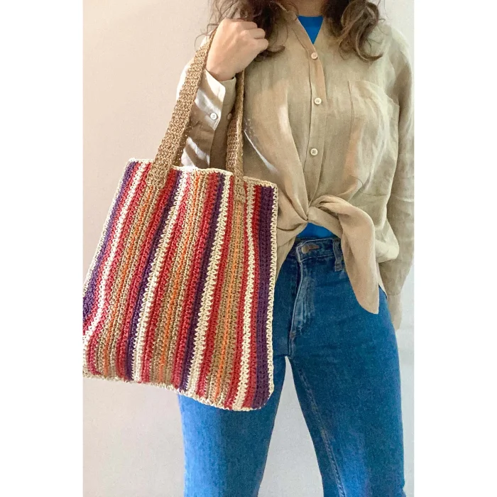Ürün: Tony Çizgili Kağıt İplik Kol Çantası