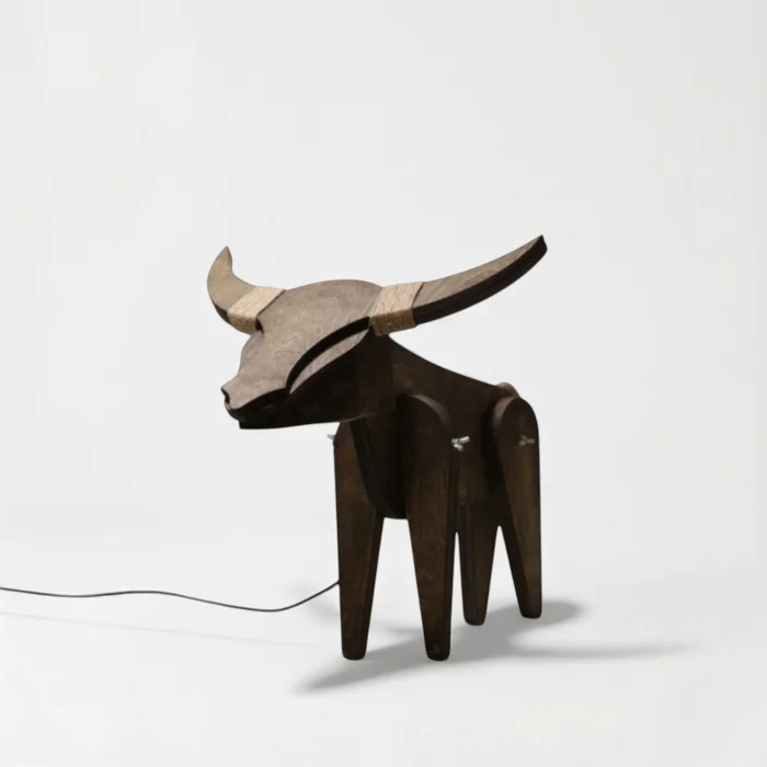 Ürün Detayları Oxlamp’in kafa kısmı masif ıhlamurdan, gövde kısmı 1.sınfı marin huş press panelden üretilmiş ve el işçiliği ile birleştirilmiştir. Ahşap yüzeylerin uygulaması EN 71-3 sertifikalı ceviz rengi doğal yağ ile sonlandırılmıştır. Masif ahşaptan üretildiğinden dolayı budak yeri ve renk tonu gibi ufak farklılıklar gözlemlenebilir. Aydınlatma bölümünde Gün Işığı Spot Led kullanılmıştır. 2 metre uzunluğunda açma kapama düğmeli kablo kullanılmıştır.