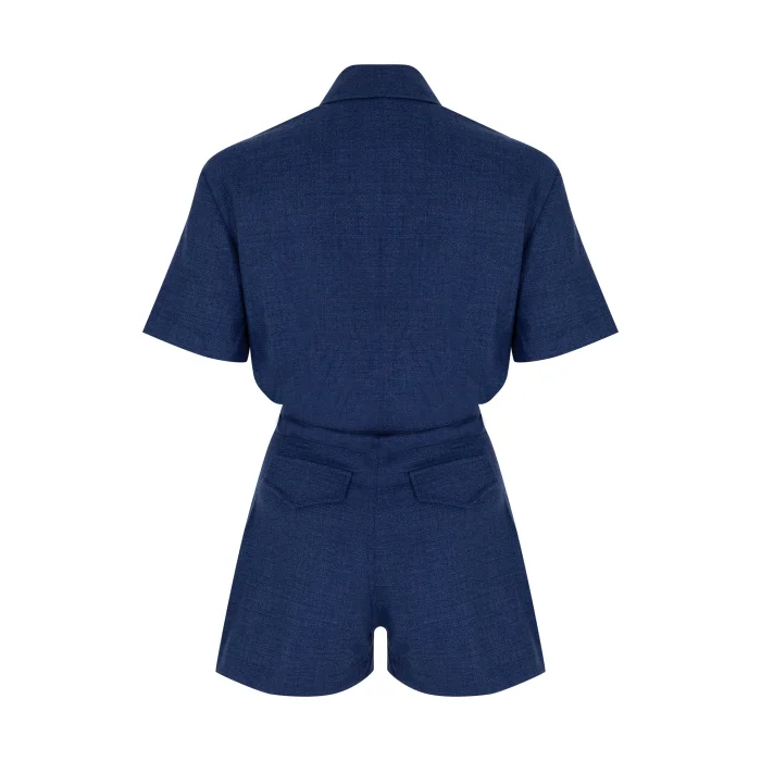 Tulum, Luce Del Sole’nin zamansız ve Modern kodlarını sergiliyor. Rahat kesimi öne çıkıyor. Gömlek Geniş yaka detayı ve önü düğmeli kapatma ile geliştirilmiş bol bir kesime sahiptir. Şort Kısmı rahat kesim ve arka cep detayında‘WABISABI’ imzalı Nakış logo süslenmiştir .