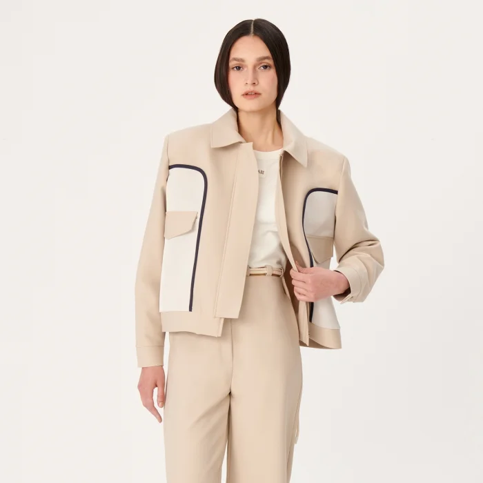 Bomber Ceket Luce Del Sole koleksiyonda yeniden tasarlanmış bir klasik olarak tanıtıldı. Bu tarz zıt panellere ve ön cep detayına sahiptir. Nervürlü yüzeylere sahip bomber ceket, her türlü sokak kıyafetini tamamlayabilir.