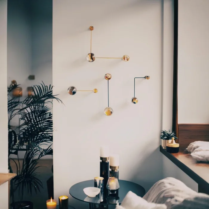 2 tanesi altın, 2 tanesi siyah renklerinde, üzerinde 9 adet yarım küre bulunan 4 adet metal profilden oluşmaktadır. Metal taşıyıcılar üzerine yerleştirilmiş yarım küreler, sertleştirilmiş reçineden oluşturulmuştur. Yarım küreler içinden görseller, ressam Melis Önalan Altıparmak’ın orijinal resim uygulaması parçalarıdır. 4'lü settir.