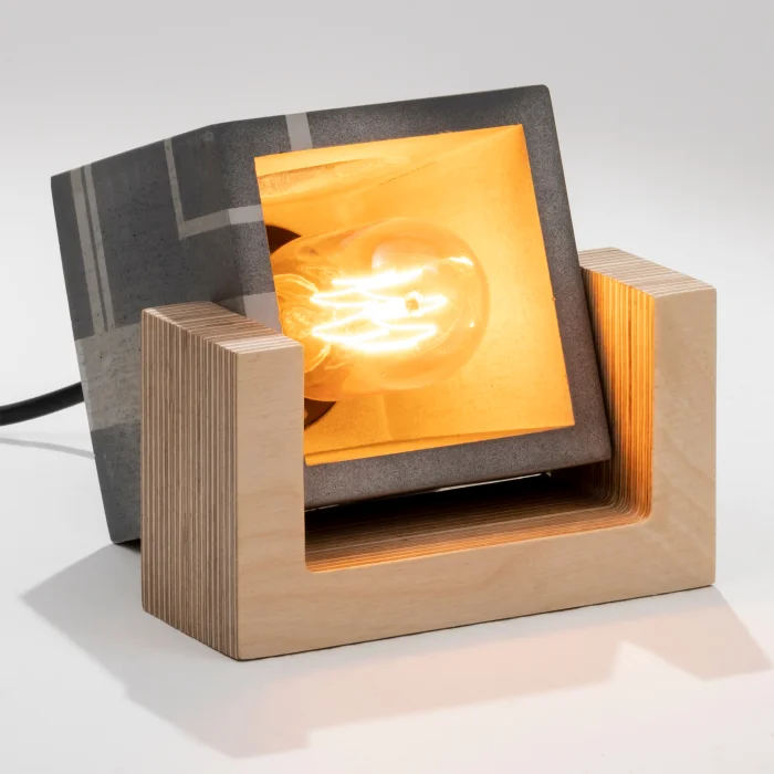 Circuit Beton Ahşap Masa Lambası - Kare ile yaşamınıza ilham veren dokunuşları hissedeceksiniz!