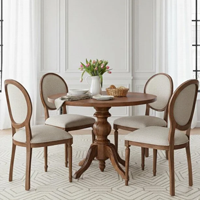 Ürün: Orlando Yuvarlak Masa Takımı - 4 Döşemeli Kayın Sandalye, Sabit Ahşap Tasarım