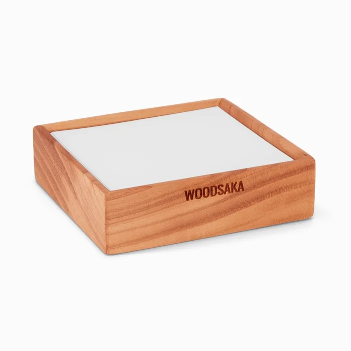 Woodsaka Gobi Not Kağıdı Kutusu ve Ataçlık - Kiraz Ölçüler: 10.4cm x 10.4cm x 3cm Ürün Özellikleri: Not kağıtlarınız, ataçlar, bant vb. küçük gereçleri bir arada tutmak ve masanızı güzelleştirmek için tasarlandı. Tamamen kiraz ağacından üretilmiştir. Ahşabın korunması, kimyasal içermeyen doğal yağ ile sağlanmıştır. Kullandığımız yağ EN71-3 insan ve çevre dostu ürün sertifikasına sahiptir. Malzeme: Kiraz Set: Bu ürün, kalemlik, not kağıdı kutusu, ataşlık, kartvizitlik, yatay saklama kutusu ve A4 kağıt ve evrak tepsisi içeren Gobi Masaüstü Seti'nin bir parçasıdır. Set olarak yan yana veya üst üste kullanabilir, masanızı organize edebilirsiniz. Üretim: Beyaz kağıda çiziminden paketlenmesine kadar tüm işler atölyemizde yapılmıştır. Sadece kendi ürettiğimiz ürünleri satıyoruz, bu sebeple güvenle kullanabilirsiniz. Not: Bu ürün doğal malzemelerden üretilmiştir. Kullanılan ağacın renk ve çizgileri, örnek fotoğraflarla farklılık gösterebilir. Ürün el ile montaj edilmiş ve zımparalanmıştır. Ölçülerde küçük değişiklikler olabilir.