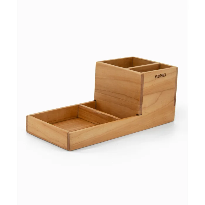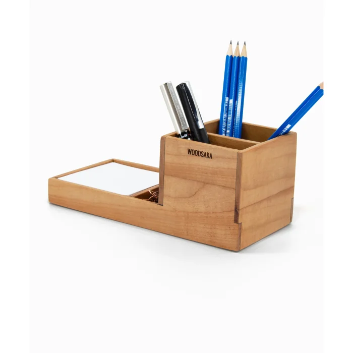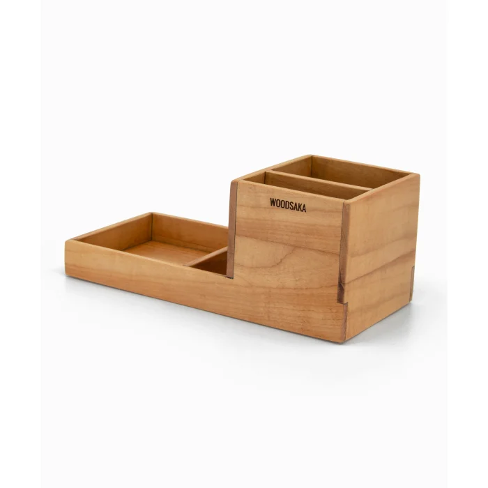 Woodsaka ProKit Çok Amaçlı Organizer - Kalemlik Not Kağıdı Kutusu Ataçlık Bir Arada - Model 3 - Kiraz Ağacından