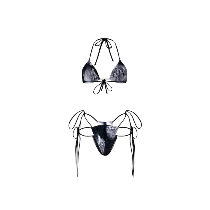-Wuen Black Sılver Bıkını Set *Wuen Charm Baskılı Bikini Alt Ve Üst. *Likralı. (Esnek Kumaş) *Bağlamalı Ayarlanabilir. -Renk *Gri/Siyah