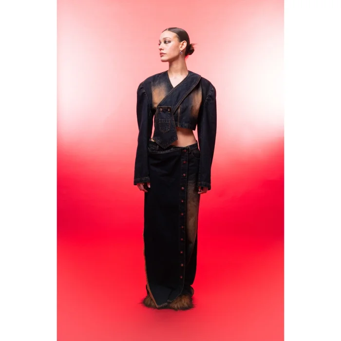 -Wuen Denim Mini Ceket *Denim Crop Ceket. *Takılıp Çıkarılabilir Cep. *Kot. -Modelin Üstündeki Beden (S)
