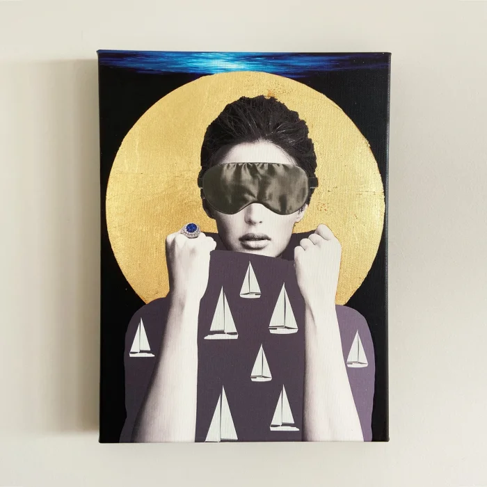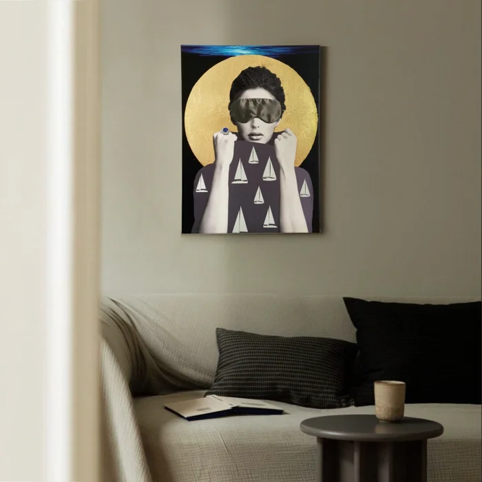 "Girl w a sleep mask" El Yapımı Tablo Malzeme Bilgisi Dijital Baskı Kanvas Ahşap Akrilik Boya, Altın Varak Dijital İlüstrasyon üzeri akrilik boya ve altın varak uygulaması ile tamamlanmıştır. Ölçü : 30x40 cm, 1 adet kanvas tablo. Tamamen elişi ve eşsizdir. Monitör rengi, ışık vs. sebebi ile farklılık gösterebilir. *Tablolarımızın her biri sanatçılarımız tarafından yapılan el yapımı çalışmalardır; bu sebeple her biri kendi içinde eşsizdir ve görseldeki ile küçük farklar olabilir. Türkiye' de üretilmiştir.