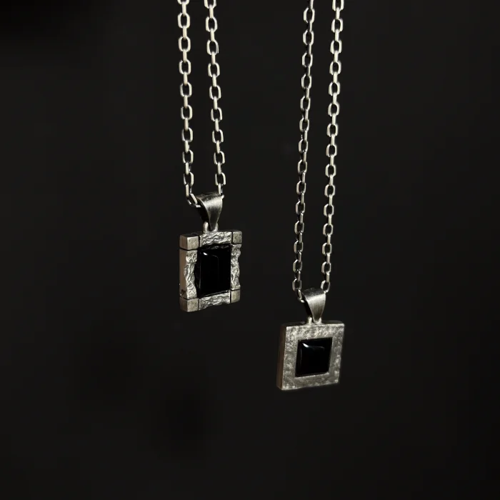 Ürün: Kare Çerçeve Kolye, 925 Ayar Gümüş Unisex Kolye