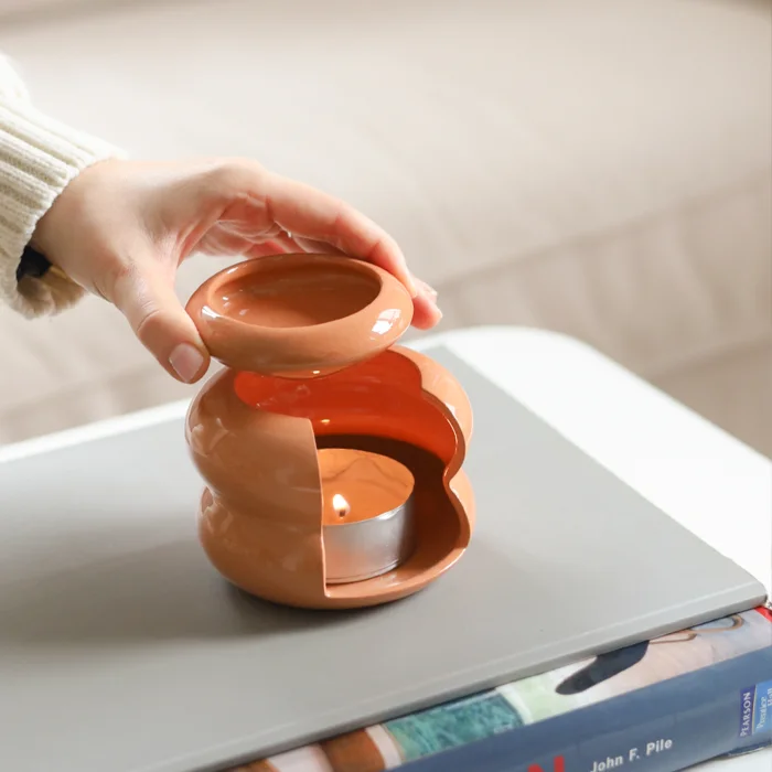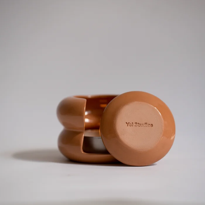 Yel Studios imzalı el yapımı buhurdanlık, Almanya'nın prestijli bölgelerinden temin edilen yüksek kaliteli taş kili (stoneware) ve 1200℃'lik özel pişirim süreçleriyle, seramik kilinden çok daha yüksek dayanıklılık sunar. Geniş renk ve doku yelpazesi ile iç ve dış mekan kullanımlarıyla uyumlu çeşitli alternatifler sunar.