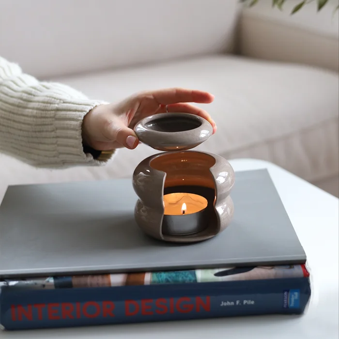 Yel Studios imzalı el yapımı buhurdanlık, Almanya'nın prestijli bölgelerinden temin edilen yüksek kaliteli taş kili (stoneware) ve 1200℃'lik özel pişirim süreçleriyle, seramik kilinden çok daha yüksek dayanıklılık sunar. Geniş renk ve doku yelpazesi ile iç ve dış mekan kullanımlarıyla uyumlu çeşitli alternatifler sunar.