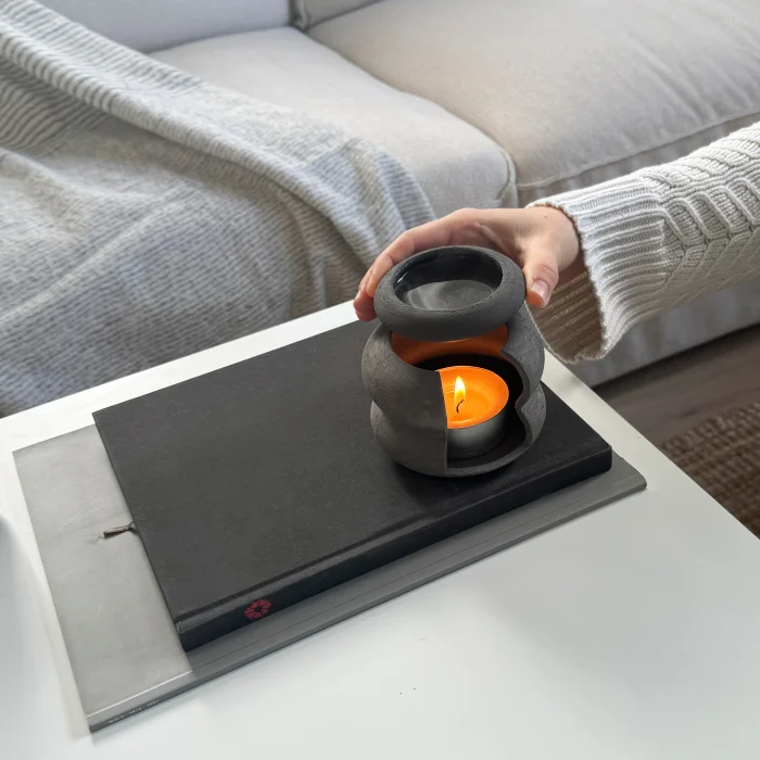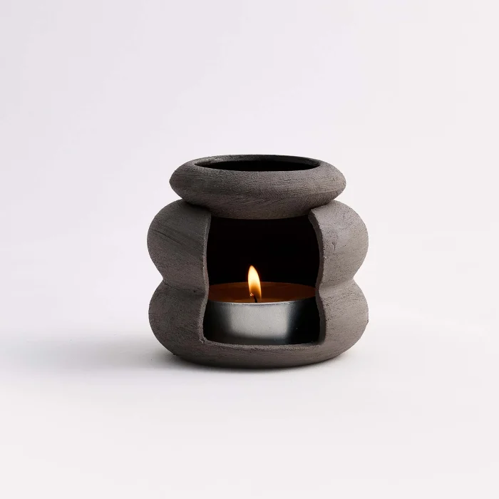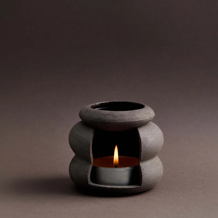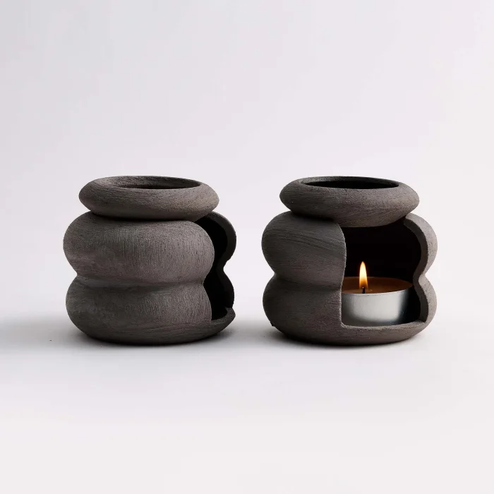 Yel Studios imzalı el yapımı buhurdanlık, Almanya'nın prestijli bölgelerinden temin edilen yüksek kaliteli taş kili (stoneware) ve 1200℃'lik özel pişirim süreçleriyle, seramik kilinden çok daha yüksek dayanıklılık sunar. Geniş renk ve doku yelpazesi ile iç ve dış mekan kullanımlarıyla uyumlu çeşitli alternatifler sunar.