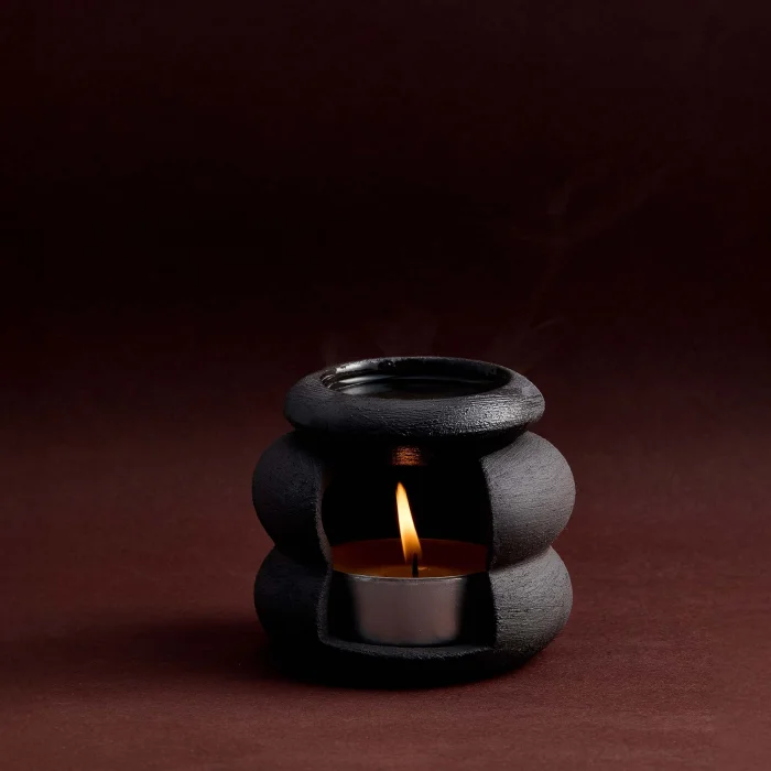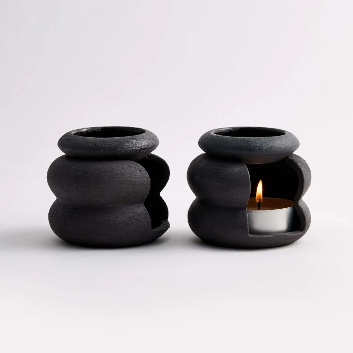Yel Studios imzalı el yapımı buhurdanlık, Almanya'nın prestijli bölgelerinden temin edilen yüksek kaliteli taş kili (stoneware) ve 1200℃'lik özel pişirim süreçleriyle, seramik kilinden çok daha yüksek dayanıklılık sunar. Geniş renk ve doku yelpazesi ile iç ve dış mekan kullanımlarıyla uyumlu çeşitli alternatifler sunar.