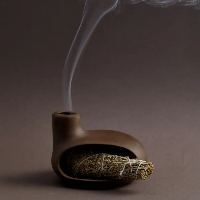Yel Studios imzalı el yapımı tütsülük, Almanya'nın prestijli bölgelerinden temin edilen yüksek kaliteli taş kili (stoneware) ve 1200℃'lik özel pişirim süreçleriyle, seramik kilinden çok daha yüksek dayanıklılık sunar. Geniş renk ve doku yelpazesi ile, iç ve dış mekan kullanımlarıyla uyumlu çeşitli alternatifler sunar.