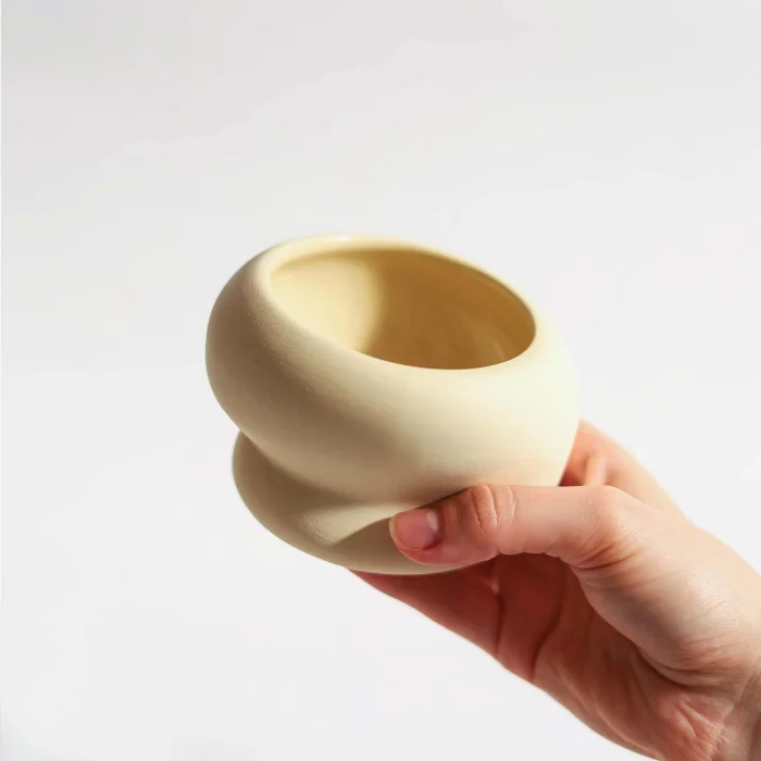 Yel Studios tasarımı el yapımı olarak üretilen naif ve modern seramik kupa, pastel tonlarının doğal ve sıcaklığını bir araya getiriyor. Ergonomik tasarımı sayesinde ürün, rahat bir tutuş sağlar. İçeceğinizin keyfini minimal bir tarzda çıkarmanıza olanak tanır.