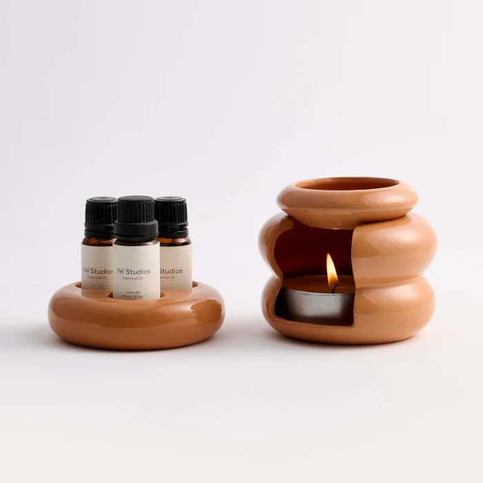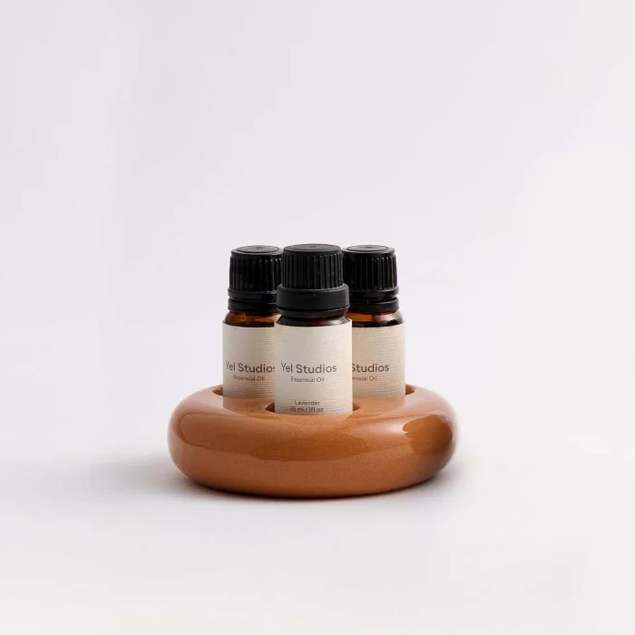 Yel Studios’un sade ve modern çizgilerini yansıtan bu el yapımı seramik yağ standı, sevdiğiniz uçucu yağları düzenli bir şekilde sergilemenizi sağlar. Minimal formu sayesinde çalışma alanı, banyo, oturma odası veya meditasyon köşelerinde düzenli ve estetik bir görünüm sunar.