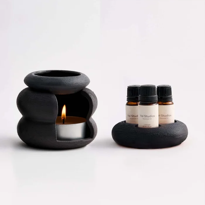 Yel Studios’un sade ve modern çizgilerini yansıtan bu el yapımı seramik yağ standı, sevdiğiniz uçucu yağları düzenli bir şekilde sergilemenizi sağlar. Minimal formu sayesinde çalışma alanı, banyo, oturma odası veya meditasyon köşelerinde düzenli ve estetik bir görünüm sunar.