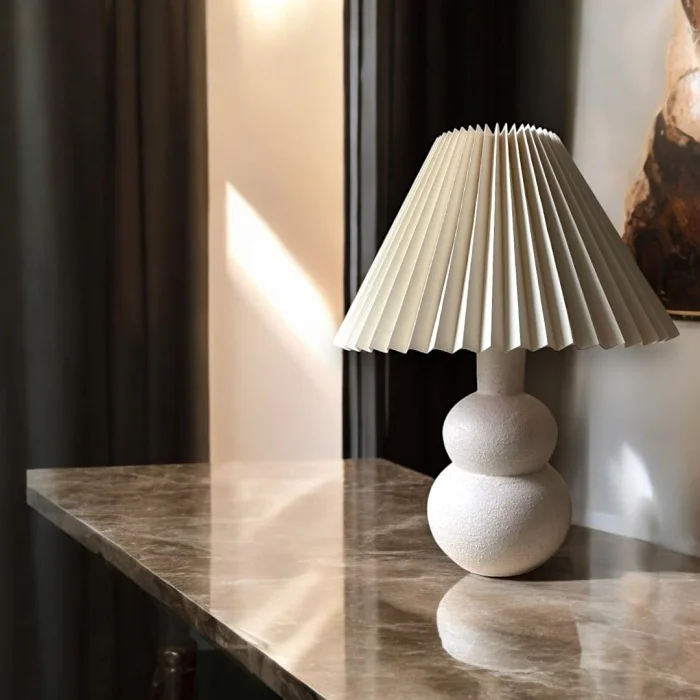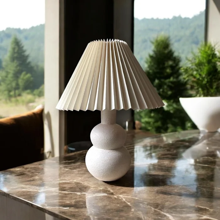 Malzeme: Seramik gövde, kumaş lamba şapkısı