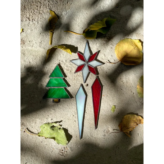Bu el yapımı Yılbaşı Ağacı Vitray Süs Paketi, Tiffany tekniği ile üretilmiş dört özel süsten oluşur. Set içinde bir çam ağacı, yıldız, kırmızı ve beyaz uzun yıldız süsler bulunur. Canlı kırmızı, yeşil ve beyaz renkler ile tasarlanmış bu vitray süsler, ağacınıza büyüleyici bir ışıltı katar. Dayanıklı yapısı ve zarif tasarımı ile uzun yıllar kullanabileceğiniz bu özel süsler, yılbaşı ruhunu evinize taşımak için mükemmel bir seçenektir. Yılbaşı ağacınızı bu eşsiz vitray süslerle tamamlayarak klasik ve modern bir dokunuş katın.