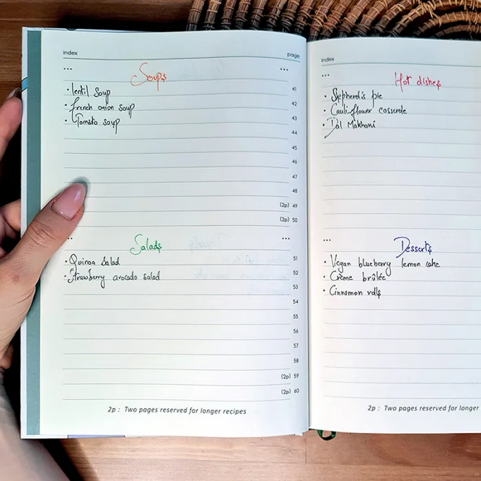 - Ek olarak yiyecek gramajları, dönüşüm tabloları, sofra düzeni, ipuçları gibi bilgilendirme sayfaları mevcuttur.