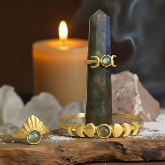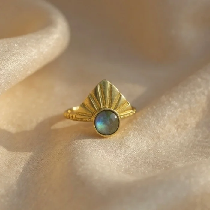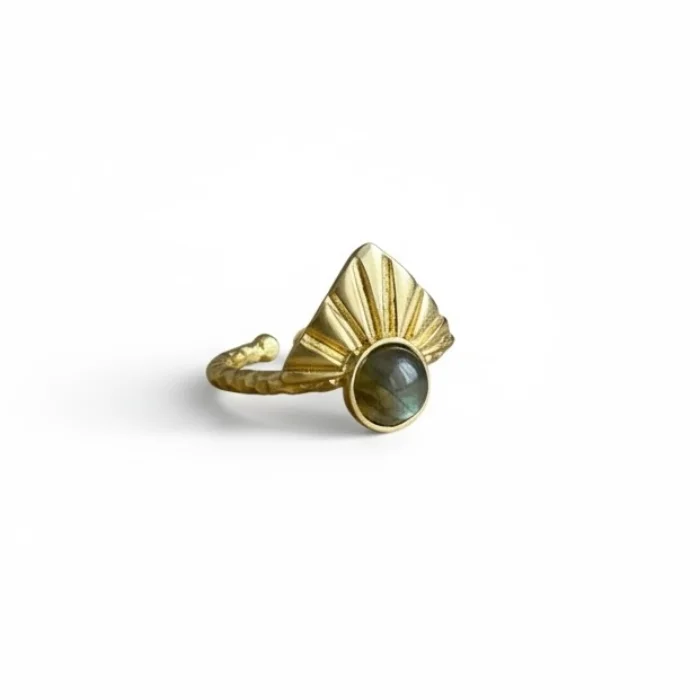 It is made of natural stone and brass. Since it is adjustable, it is compatible with all fingers. Due to the 100% natural materials, there may be slight variations in color and pattern.