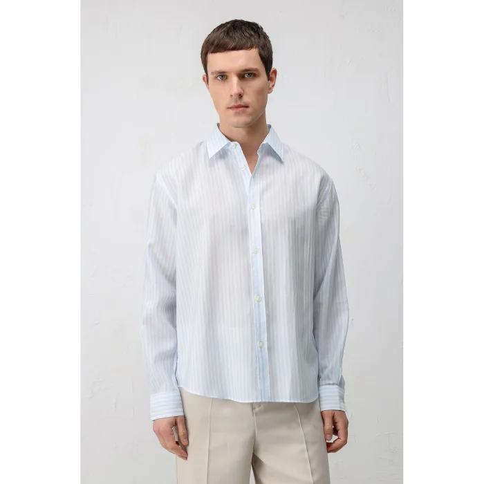 out with its unique stance dominated by blue, the Antioch Long Sleeve Shirt impresses with its luxurious design reflecting the characteristic silhouette. The Long Sleeve design is complemented by a button closure. The design, which will make you feel extremely comfortable with its luxurious texture and pattern, adapts to use in your daily city styles and office sets. The design, which you can use with your various trousers according to your wishes, allows you to gain a stylish and assertive look and takes your style one step further.