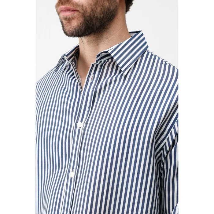 out with its unique stance in navy blue dominance, the Antioch Long Sleeve Shirt impresses with its luxurious design reflecting the characteristic silhouette. The Long Sleeve design is complemented by a button closure. The design, which will make you feel extremely comfortable with its luxurious texture and pattern, adapts to use in your daily city styles and office sets. The design, which you can use with your various trousers according to your wishes, allows you to gain a stylish and assertive look and takes your style one step further.