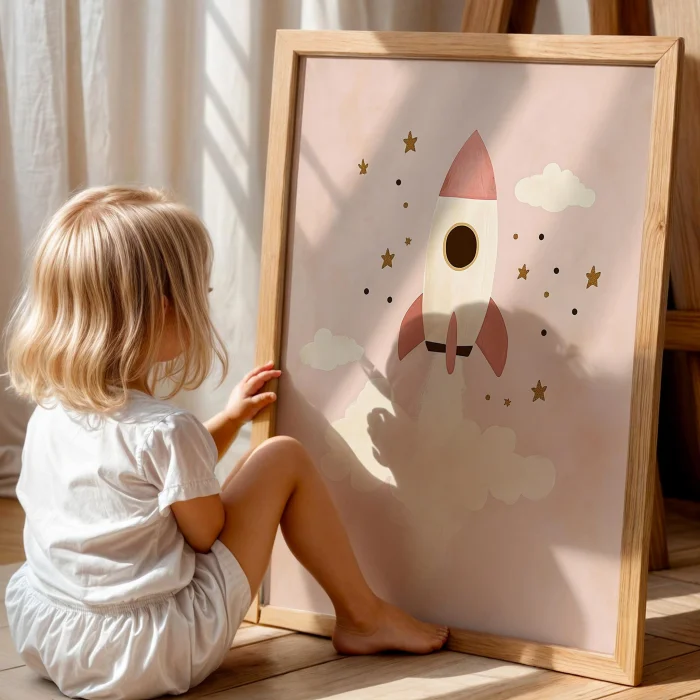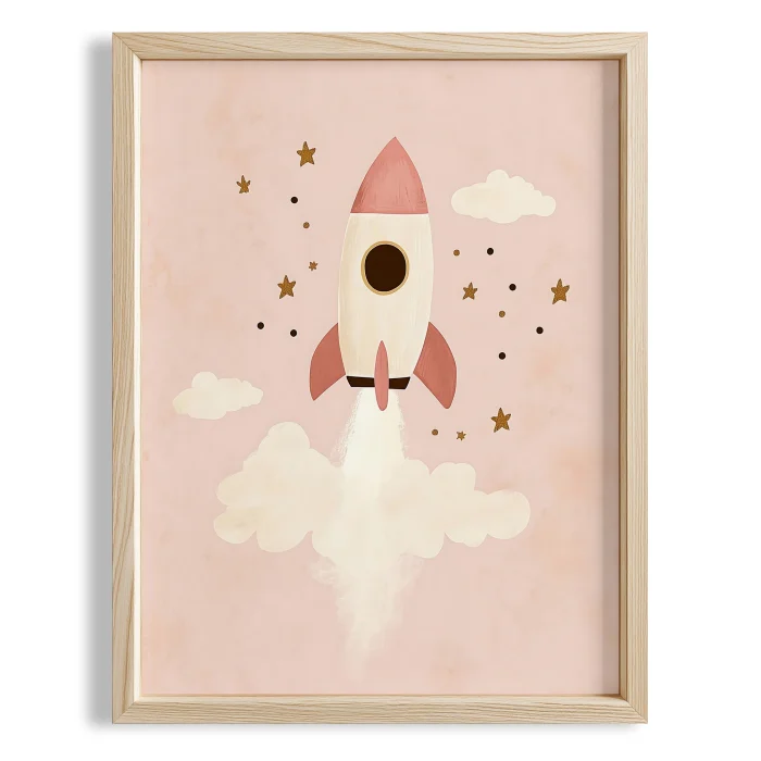 Boho Flying Rocket Girls' Room Wooden Wall Art