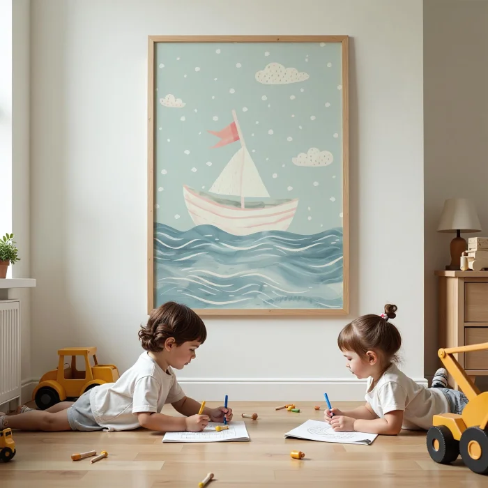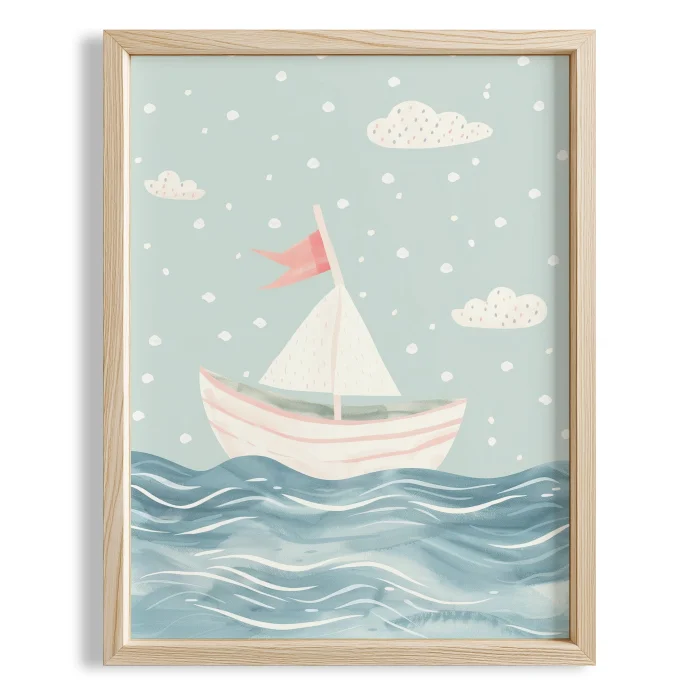 Product: Dalgalı Deniz Ve Gemi Children's Room Wooden Framed Wall Art I