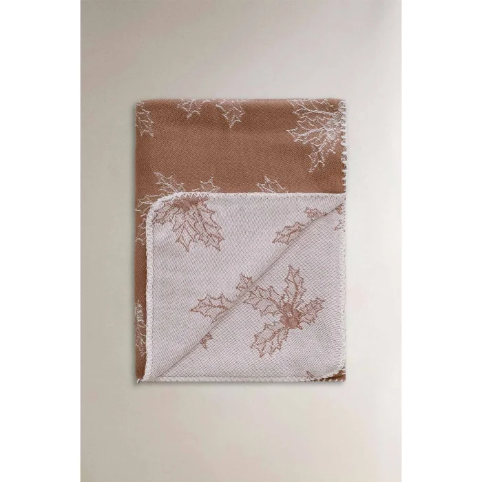 Reflecting the spirit of Christmas, the 100% cotton throw with holly pattern adds a warm touch to living spaces with its natural texture and ornamental stitching details.; 130x170 cm.; It can be used on both sides.