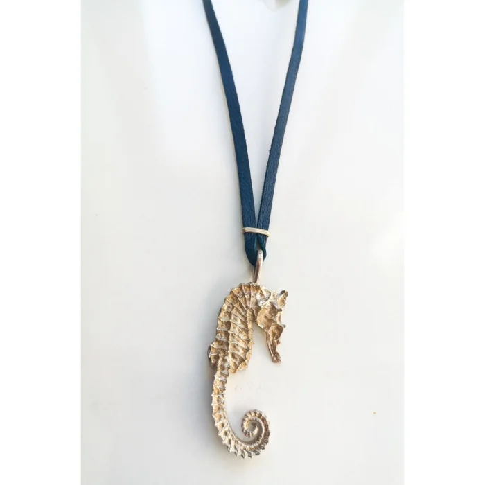 Product: Silver Dark Blue Leather Seahorse Necklace