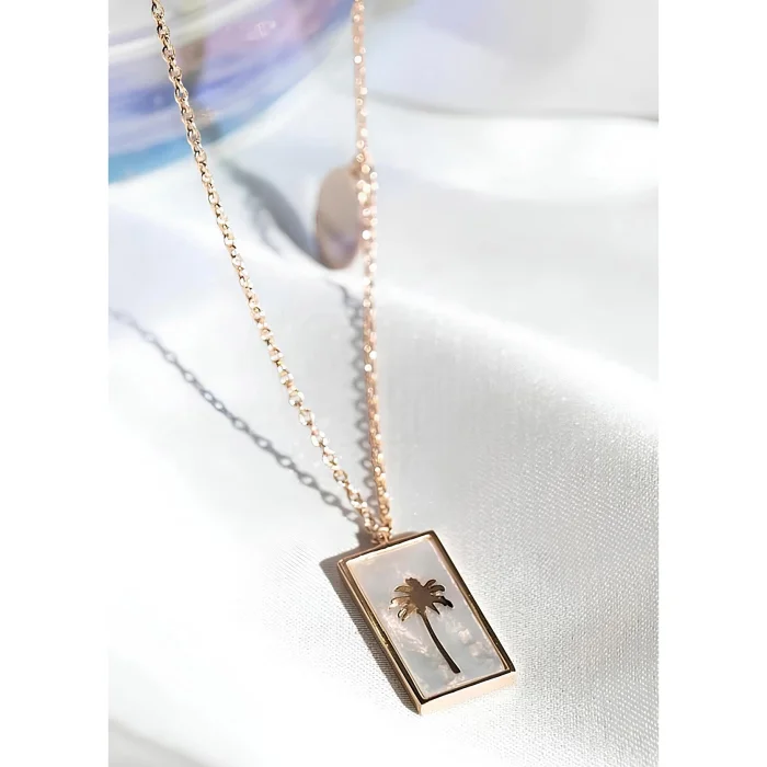 Product: Silver Necklace With Mother-of-pearl Stone And Palm Tree Corner