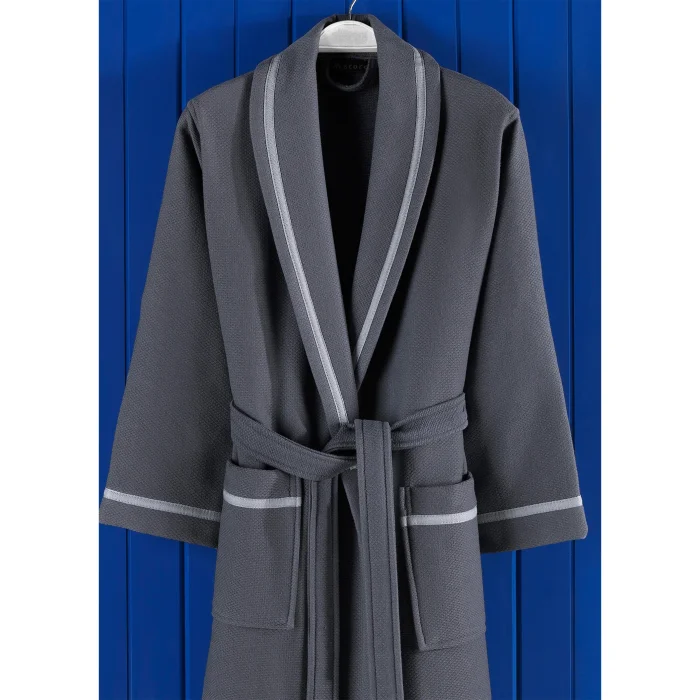 Product: Livenza Anthracite Cotton Waffle Unisex Bathrobe And Towel Set