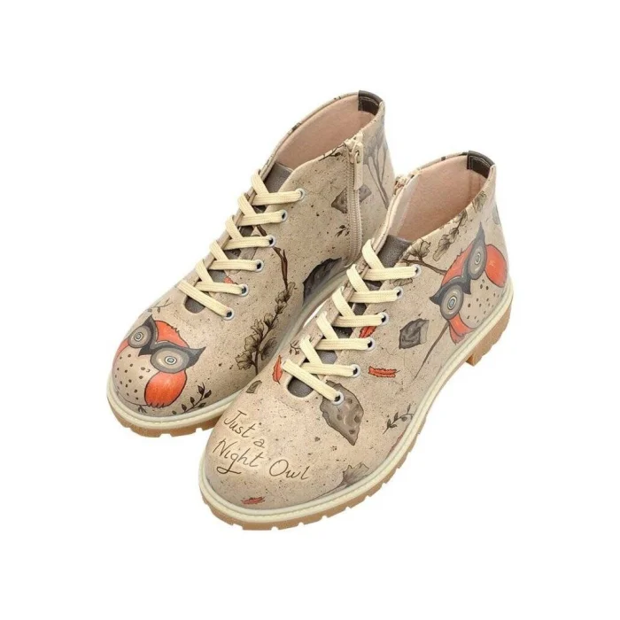 Product: Women Vegan Leather Zipper Ankle Boots - Night Owl Design