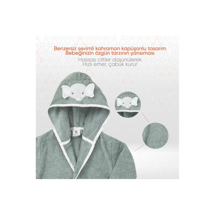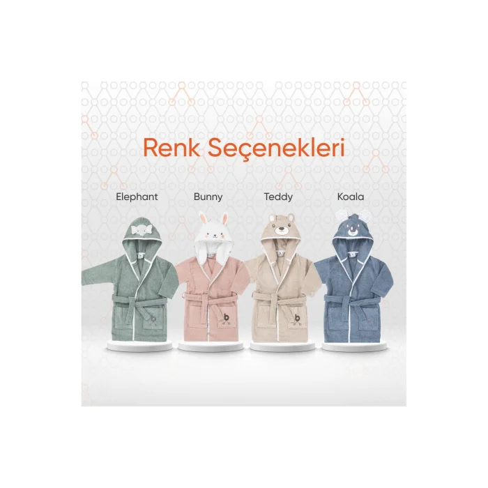 Product DescriptionGezenbebe Hero Hero Hooded Towel Baby Children's Bornose: Warm hug for little heroes! Gezenbebe Hero Hero Hooded Towel Baby Children's Bornose keeps your little heroes warm by embracing them. This bathrobe, which has a stylish and gentle design with pastel tones, is home to the facial embroidery of Gezenbebe's cute heroes, Elephant, Rabbit, Teddy Bear and Koala, and their cute ears. The hood in the form of a cap, which is easily put on your baby's head, allows it to dry quickly after bathing. With its iconic Gezenbebe patterned piping, this robe adds both comfort and style to your baby. Make the post-bath moments warm and fun with the Gezenbebe Hero Bathrobe! Prominent Features: GEZENBEBE SIGNATURE: With the beloved heroes of Gezenbebe, the little ones do not compromise on their elegance after bathing. SUPERIOR QUALITY: The breathable cotton fabric gently hugs babies' skin and is suitable for long-term use with its durability. COMFORTABLE AND WARM: With its cute patterns and soft texture, it makes post-bath moments more enjoyable. SAFE FOR BABIES: Thanks to its hypoallergenic and allergy-free structure, the skin of the little ones is safe. EASE OF USE: Thanks to the belt detail, putting on and taking off operations is much more practical. IDEAL AS A GIFT: With its unisex design, it is the perfect gift option for all the little ones. SKIN-FRIENDLY DYE: Water-based dyes used in prints do not harm the skin. CONTINUOUS DEVELOPMENT: Taking into account customer feedback, we aim to provide the best quality and comfort. Technical Details:Material Quality: Superior quality, light and breathable; It stands out with its ability to absorb water quickly and dry. Function: Designed to keep the little ones' body warm and dry quickly at the exit of the bath or pool. It offers drying and comfort togetherColor Options: Bunny (Rabbit), Elephant (Elephant), Koala (Koala) and Teddy (Teddy)Product Sizes: 1-2 Years, 2-4 Years.Care Instructions: Wash at 30 degrees and dry without exposing to direct sunlight. Make your little hero's post-bath moments both comfortable and stylish with the Gezenbebe Hero Hooded Towel Bathrobe; Offer her not only warmth, but also unique elegance!