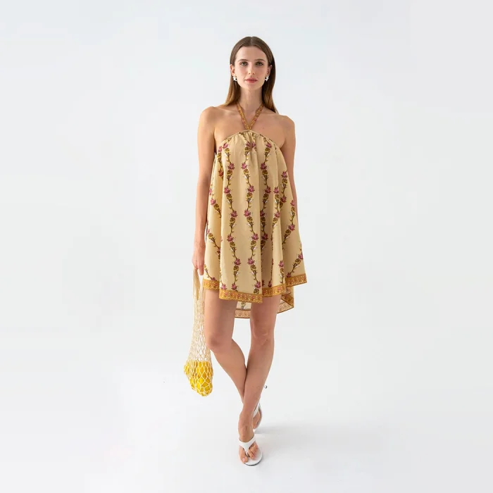 It offers a light and comfortable use with its halter neck form and flowing silhouette,