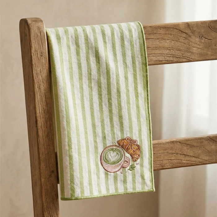 Product: Matcha & Croissant Embroidered Decorative Towel
