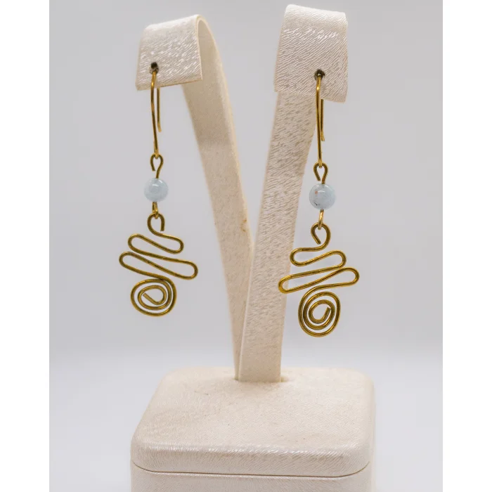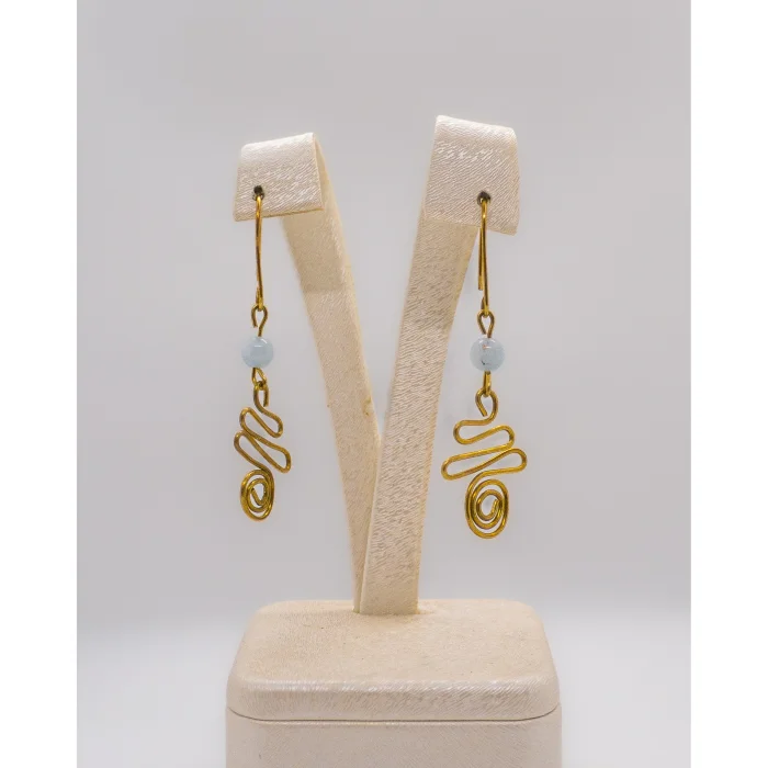 - Designed with the elegant glow of aquamarine natural stone, it is a stylish accessory that will adapt to any outfit.; - Thanks to its brass material, its durability is increased and it is ideal for long-term use.; - It offers a remarkable look with its spiral brass earring model that emphasizes the elegance of women.; - These earrings, which capture uniqueness with the use of natural stones, add a special touch to accompany your every moment; - Carefully produced by Luna Jewellery Design, compliance with quality standards is guaranteed; - Delivered safely in boxed packaging; Thus, extra protection is provided in your purchasing process.