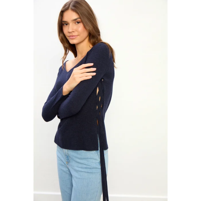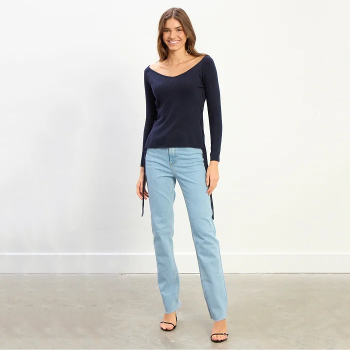 Product Code: Kevin Çapraz Bağlamalı indigo Triko Kazak s