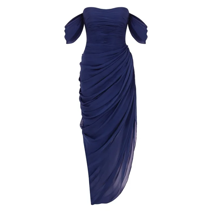 Product: Silk Draped Strapless Evening Dress