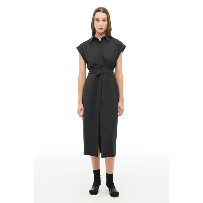 Product Details: Designed with modern lines, the dress provides breathable comfort with its 60% Polyester 20% Wool 18% Viscose 2% Lycra structure.; The shirt collar and midi length cut create a sleek and balanced silhouette; While it exhibits a striped stance with its black color, its long sleeve form offers freedom of movement.; It has a wide range of uses from office to weekend combinations.; Pattern : Regular Fit Sleeve : Low Sleeve Collar : Shirt Collar Sleeve : Long Sleeve Model Length : Midi Length Woven-Knitted : WOVEN Gender : Woman Place of Production : Turkey Pattern : Striped Blend : 60% Polyester 20% Wool 18% Viscose 2% Lycra Closure Type : Button Season : 2025 - 2026 AUTUMN WINTER Age Group: WomenSleeve Length: Long Sleeve