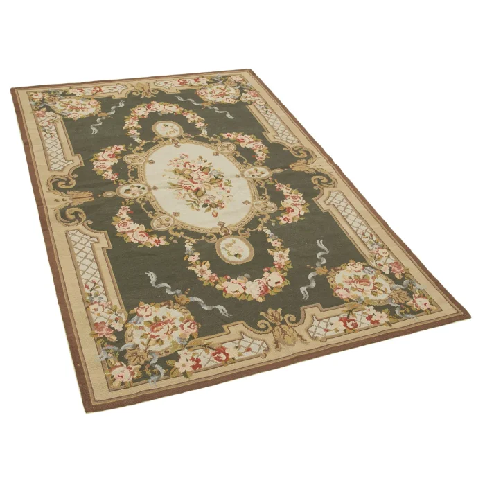 The Needlepoint Rug is 117 cm wide by 174 cm long and approximately 5 mm thick. It weighs an average of 3 kg. It is made with hand-spun wool and cotton. It takes its colors from root dyes obtained naturally.